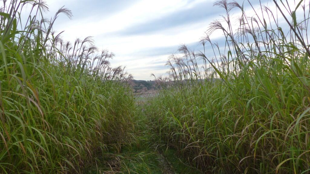 Une parcelle de miscanthus, nouvelle plante en Bretagne ?